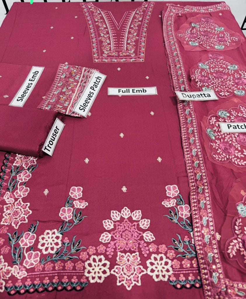 Dhanak Fabrics – 3 Piece Luxury Embroidered Suit – Heavy Work Collection – Unstitched