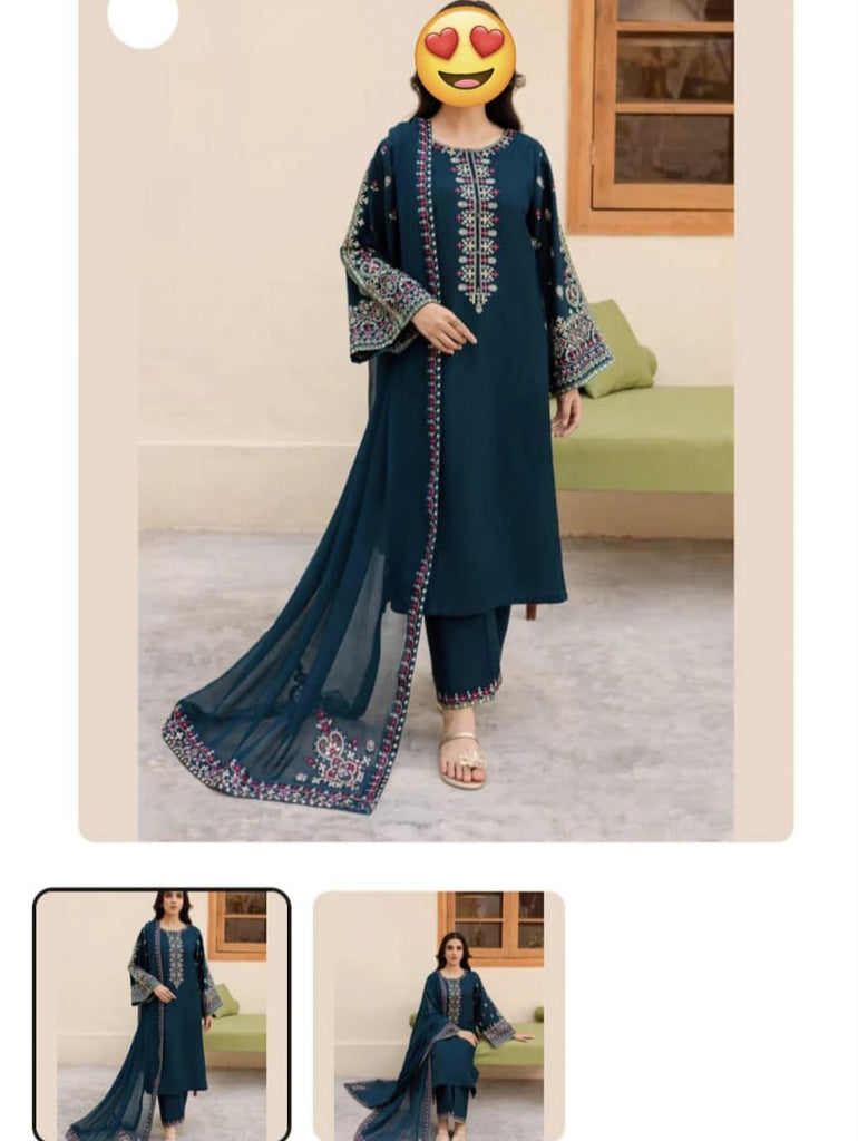 Redefine winter elegance with this Embroidered Dhanak 3-Piece Unstitched Suit, beautifully crafted with rich embroidery and luxurious textures.