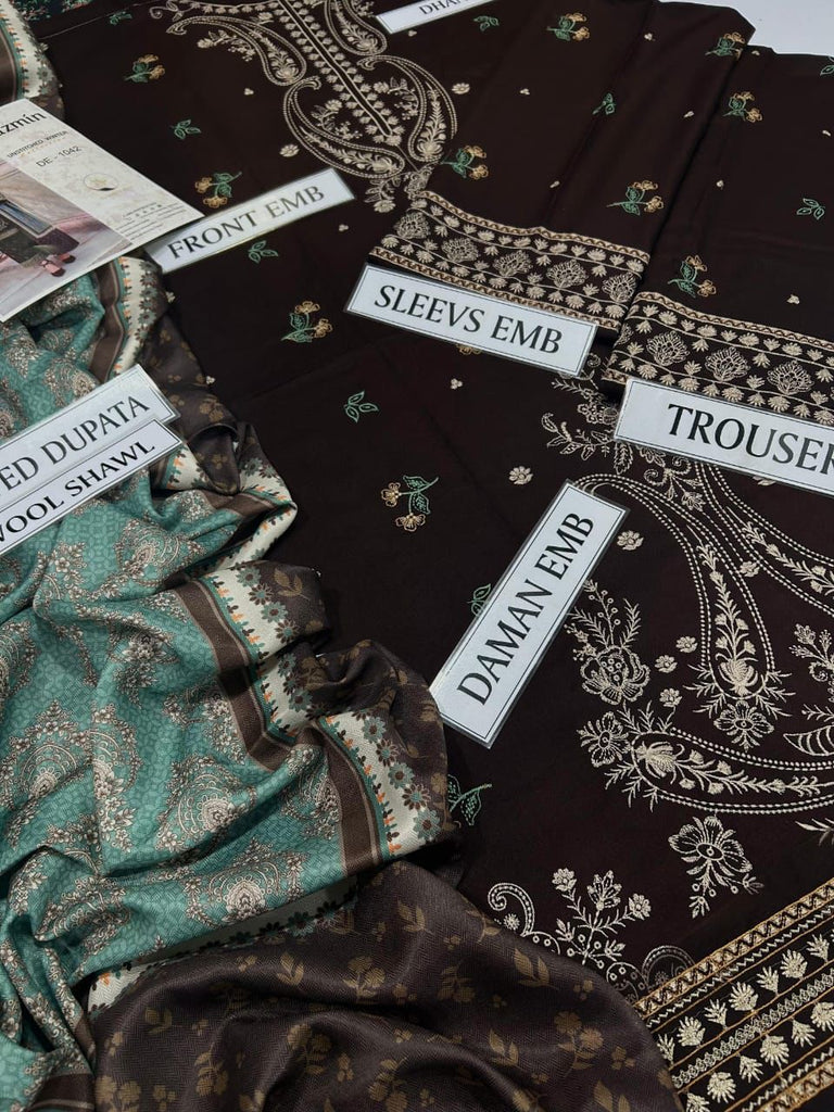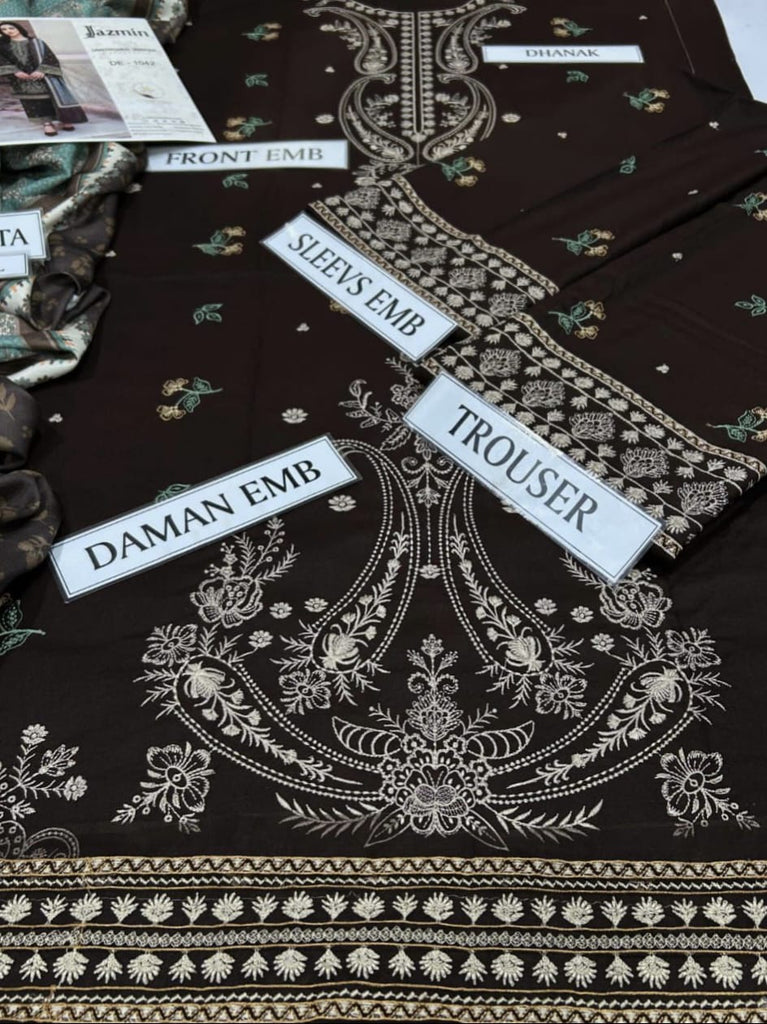 Step into timeless elegance this winter with our Luxury Embroidered Dhanak 3-Piece Unstitched Suit — a perfect blend of traditional charm and modern sophistication.